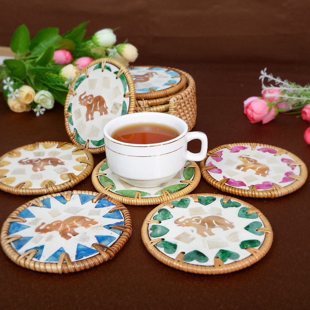 东南亚风网红越南手工贝壳藤编家用防烫茶水杯托盘装饰摆件餐桌面 English | 投诉