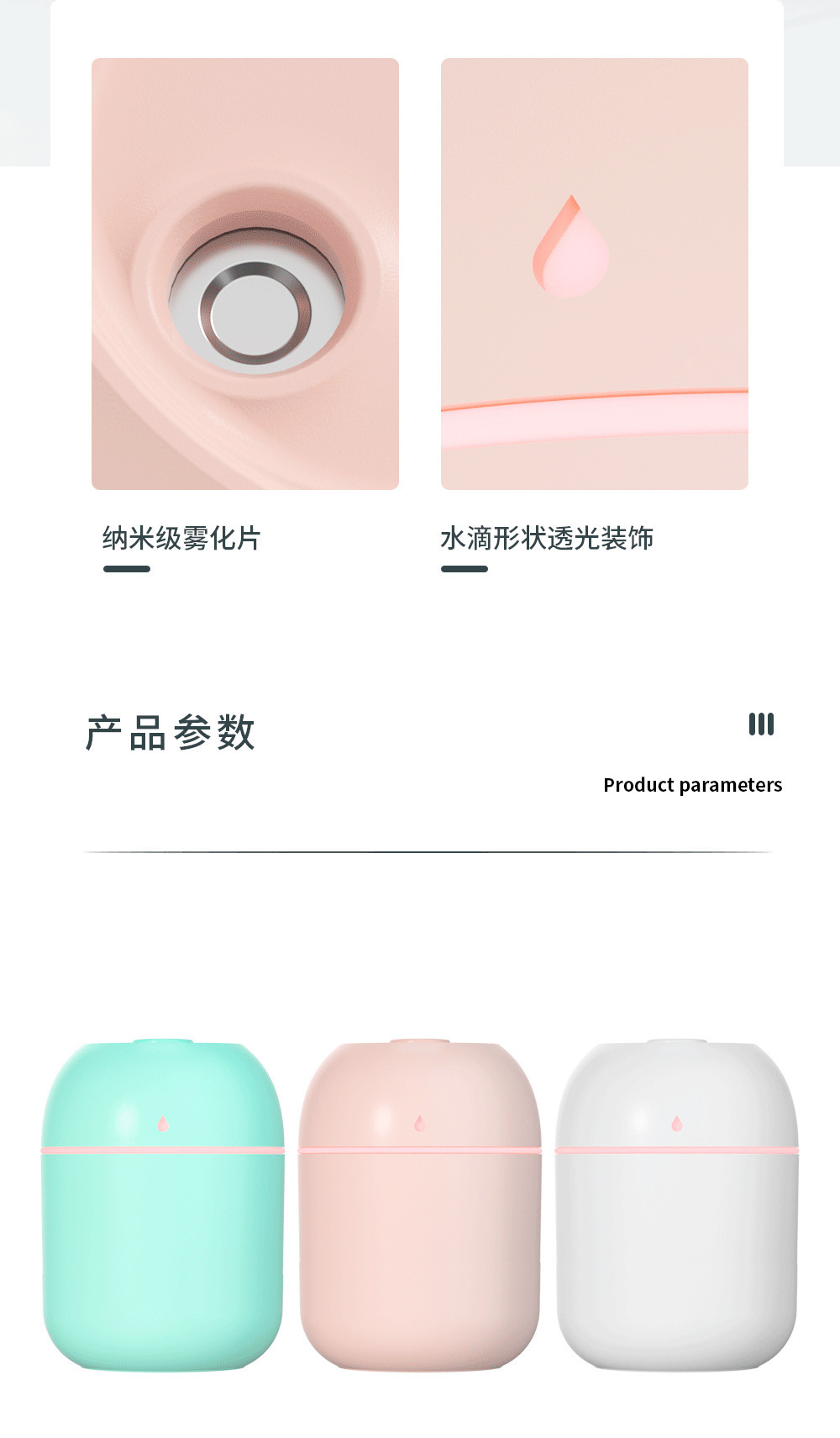 水箱容量: 0.5L以下 材质: 塑料 品牌: 其他 出雾口数: 1个 功能: 氛围灯 电源方式: USB 额定功率: 2W 定时功能: 无定时 型号: 水滴加湿器 适用面积: 10平米以下 重量: 0.12 kg/件