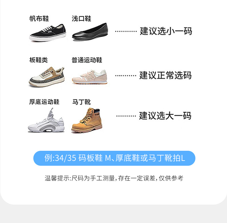 | S码(34-35)板鞋建议大一码马丁靴建议大两码 | ¥0 | 84双可售 |