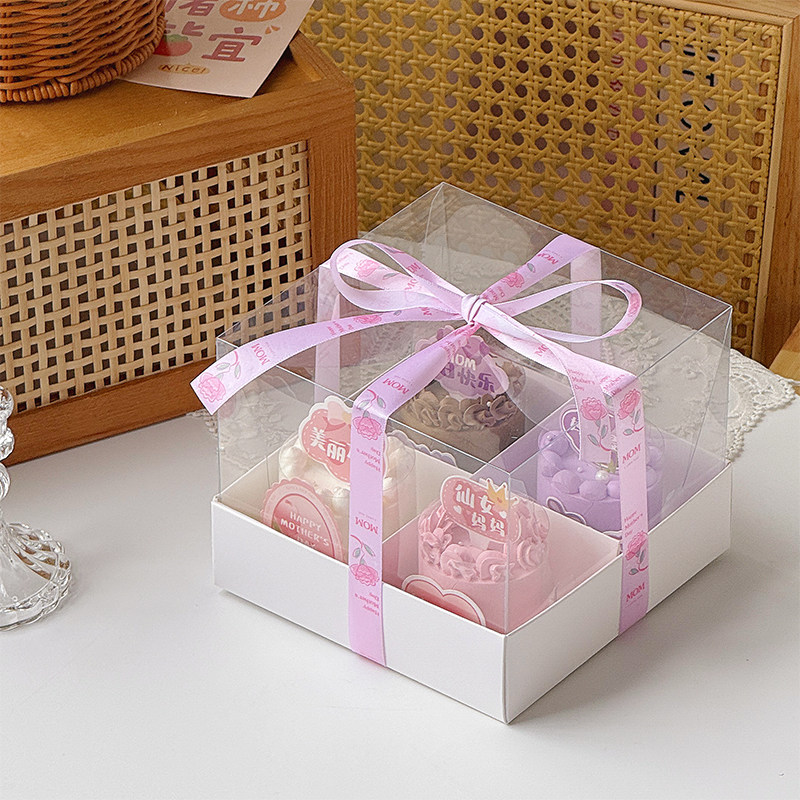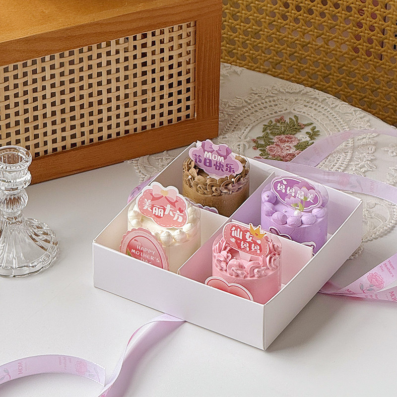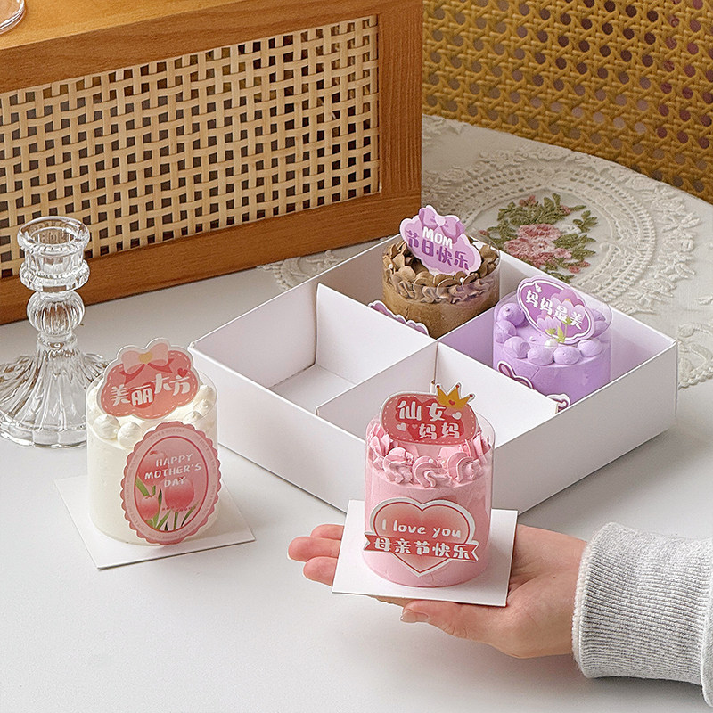 母亲节快乐慕斯杯甜品蛋糕装饰四宫格手提盒节日派对甜品包装盒