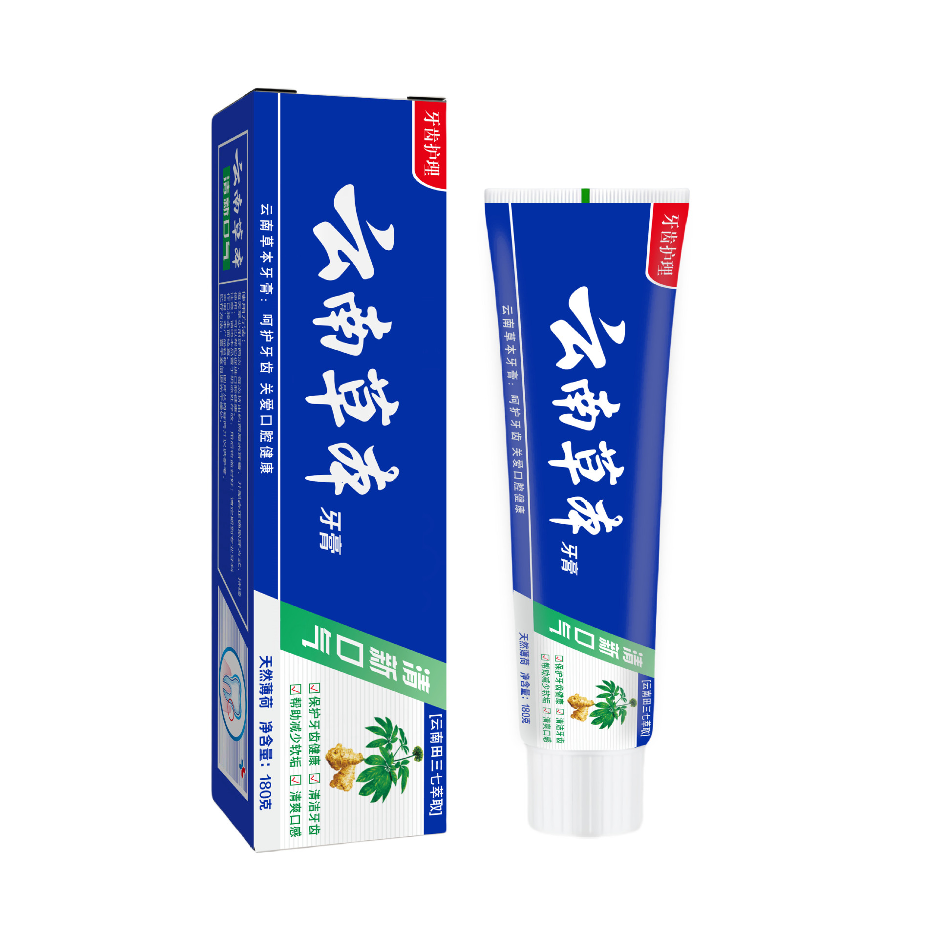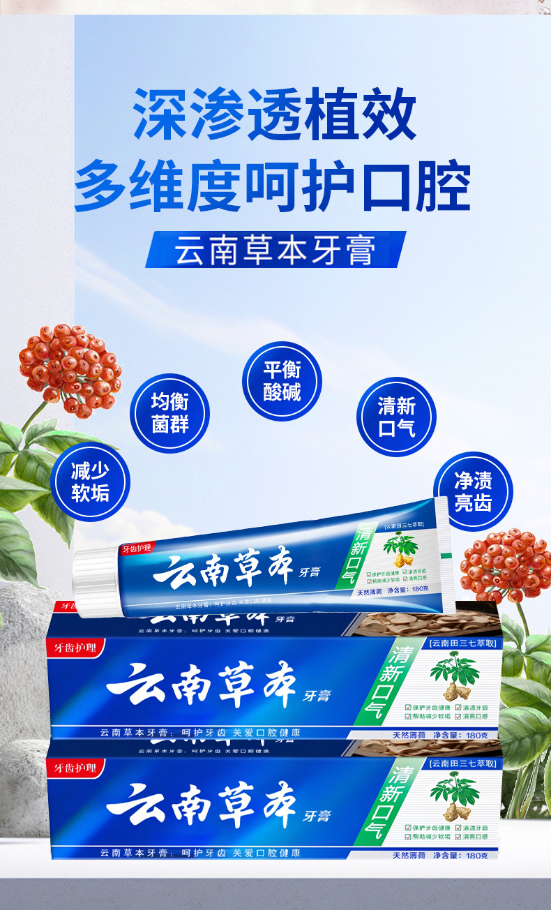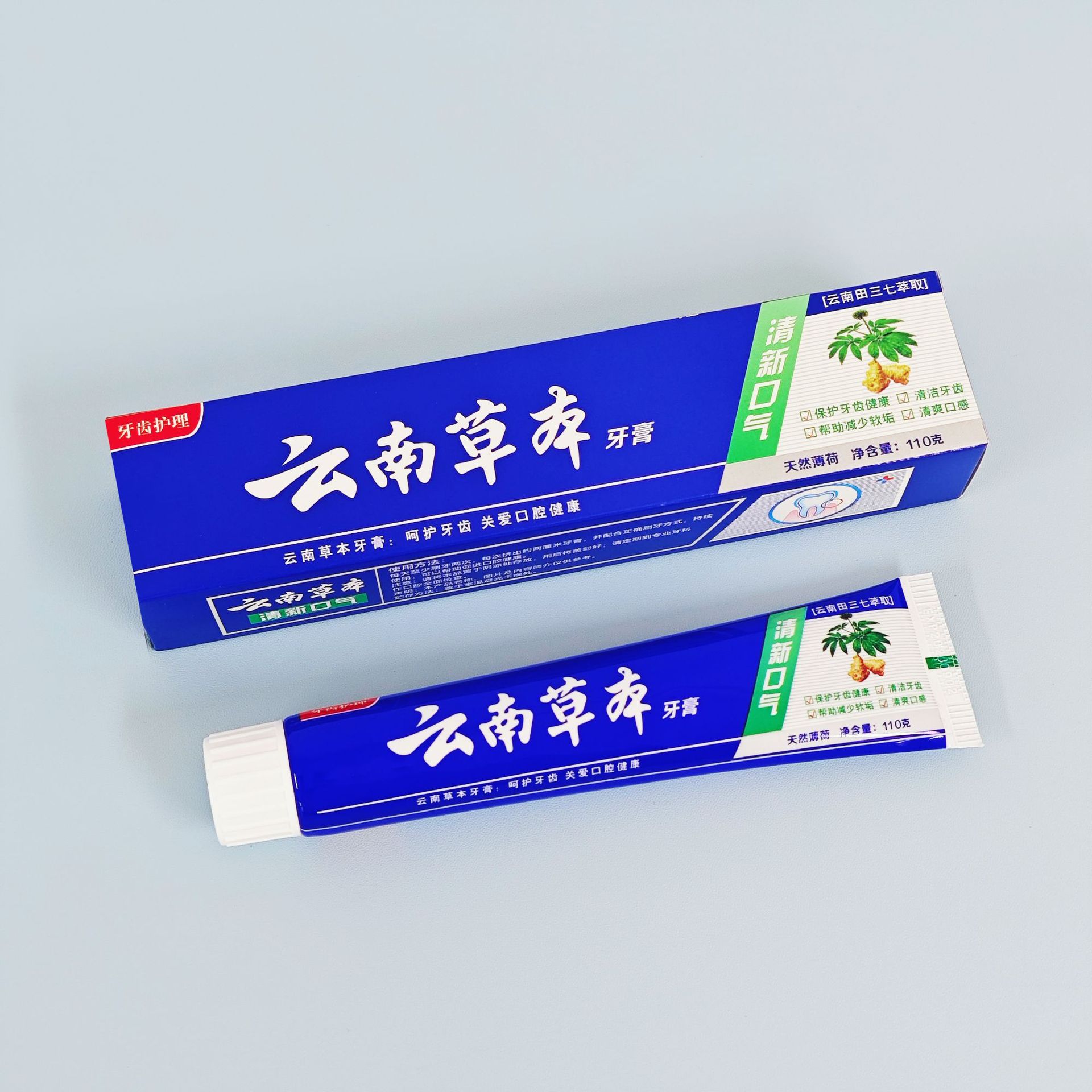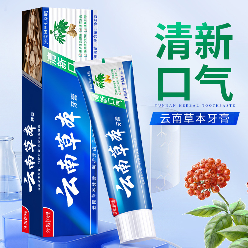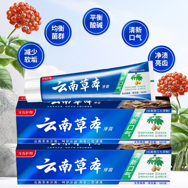 【清口护龈】云南草本健齿薄荷牙膏 清新口气大容量田七牙膏中草 English | 投诉