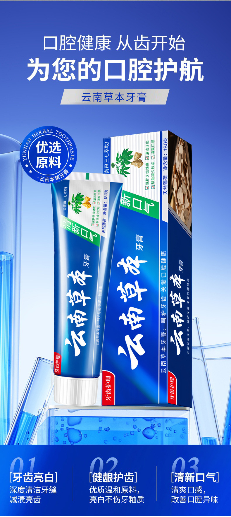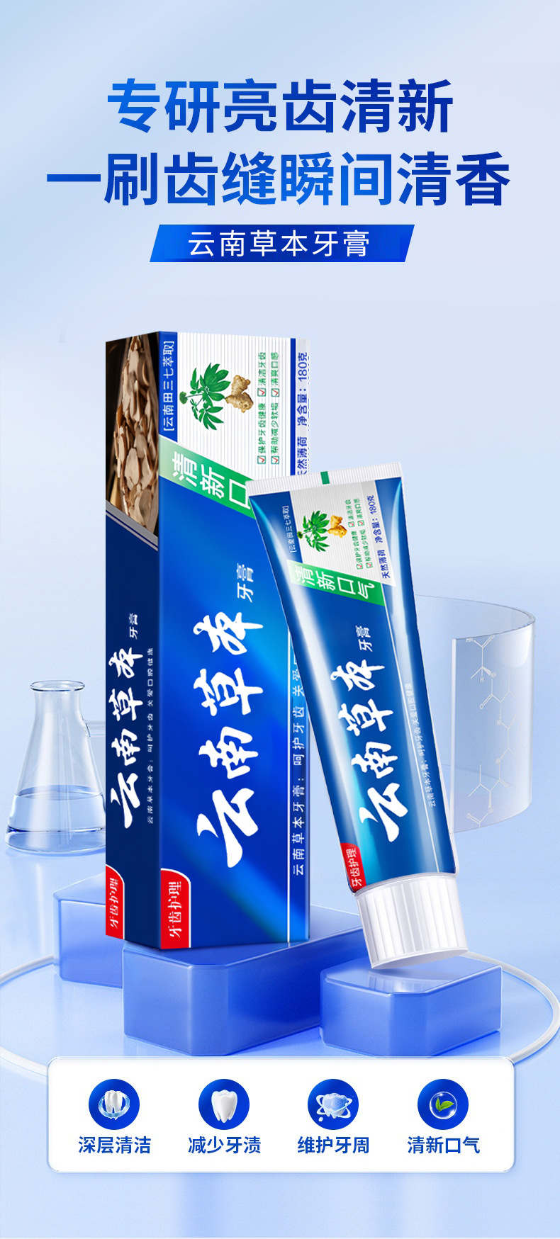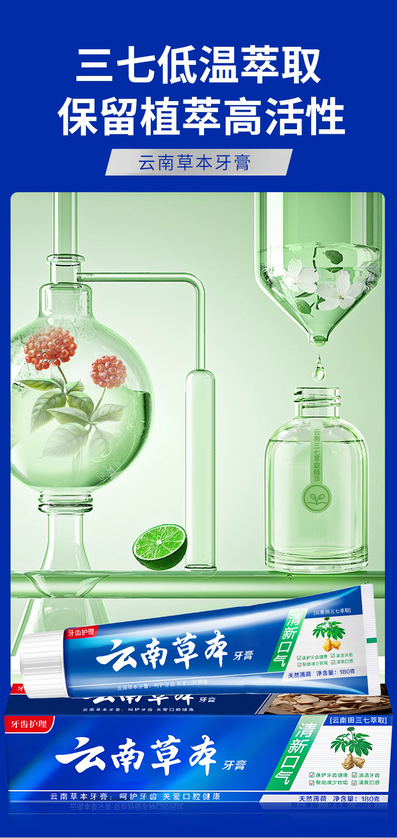 【清口护龈】云南草本健齿薄荷牙膏 清新口气大容量田七牙膏中草 English | 投诉