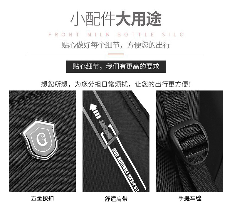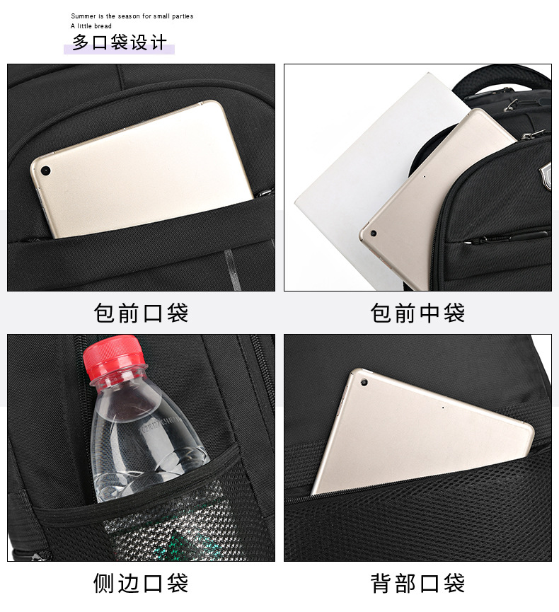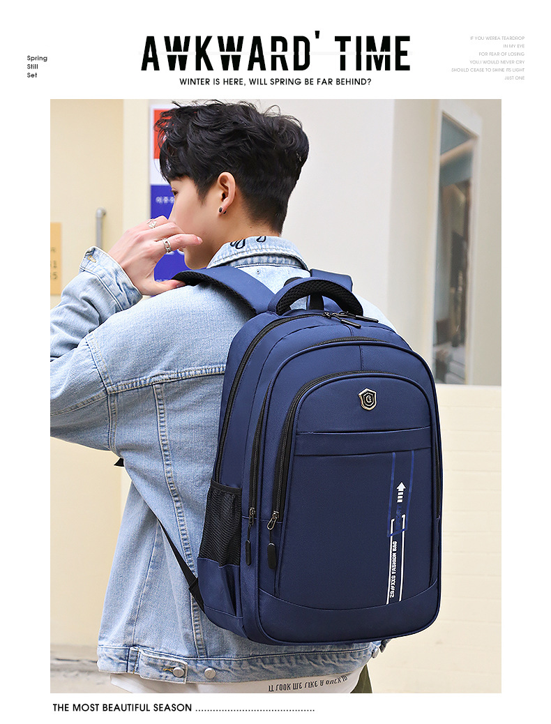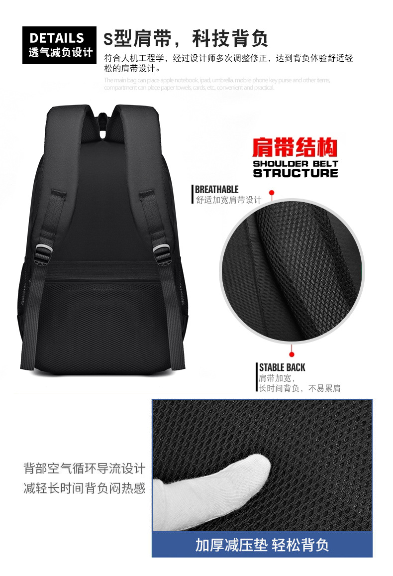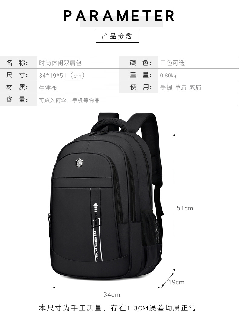 材质: 牛津布 功能: 透气 里料质地: 涤纶 皮质特征: 其它 容纳电脑尺寸: 15英寸 容量: 36-55L 适用性别: 中性/男女均可 品牌: 其他 颜色: 灰色,黑色,蓝色 尺寸: 均码 适用场景: 休闲旅行 风格: 都市简约 上市年份季节: 2024年春季 货号: YDN--2911 图案: 纯色 流行元素: 车缝线 背负系统: 气垫背带 有可授权的自有品牌: 否 重量: 0.409 kg/件