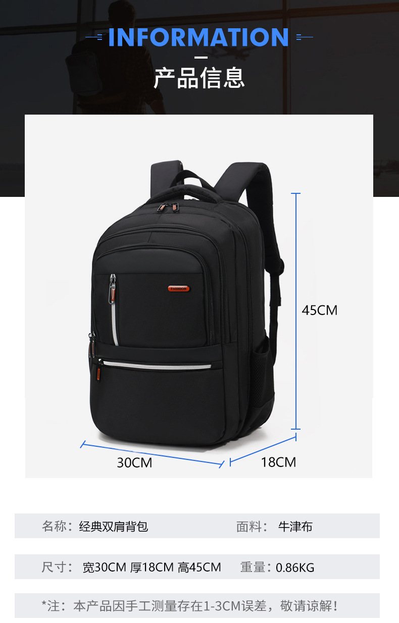 男士外出商务双肩包韩版潮流大容量电脑包男时尚休闲字母旅行背包 投诉