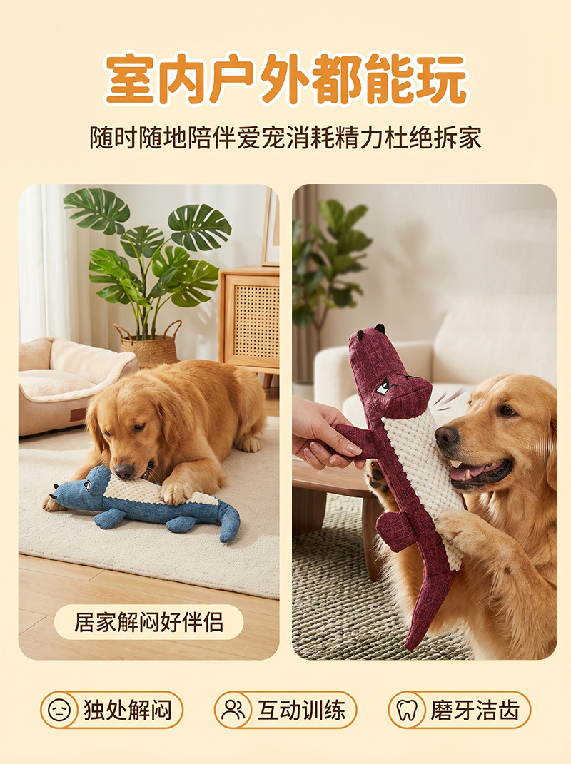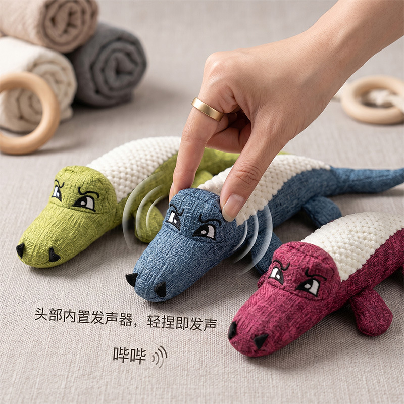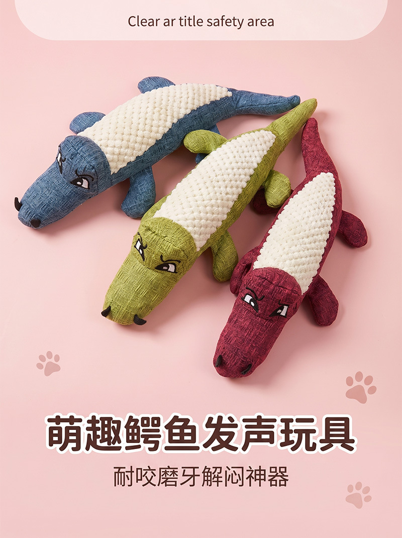 宠物狗狗鳄鱼发声玩具亚麻布耐咬磨牙解闷玩具大中小型犬互动玩