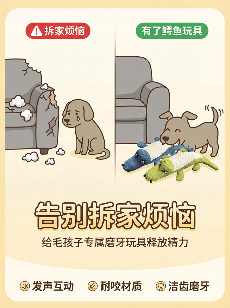 宠物狗狗鳄鱼发声玩具亚麻布耐咬磨牙解闷玩具大中小型犬互动玩 投诉