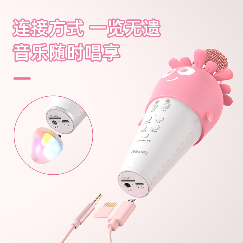 K5蓝牙话筒,卡通萝卜外形设计,支持变音,消原唱音,配送彩灯,为小孩轻量化设计