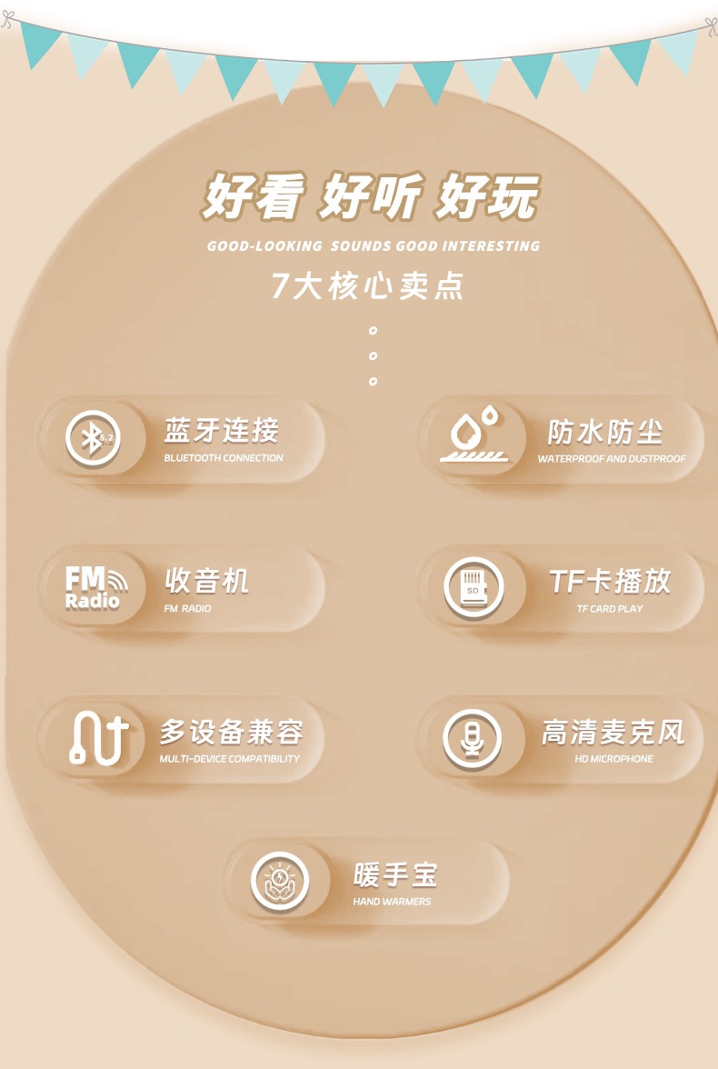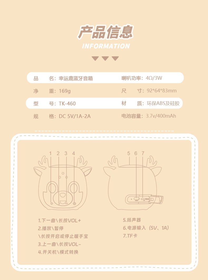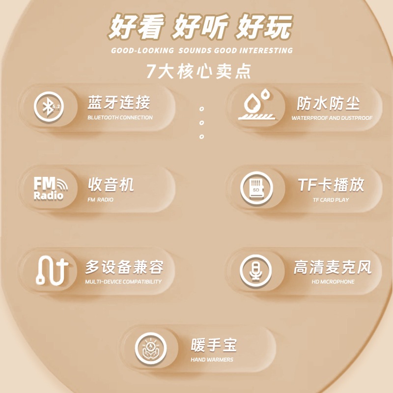 功能:BT/TF/TWS/暖手宝