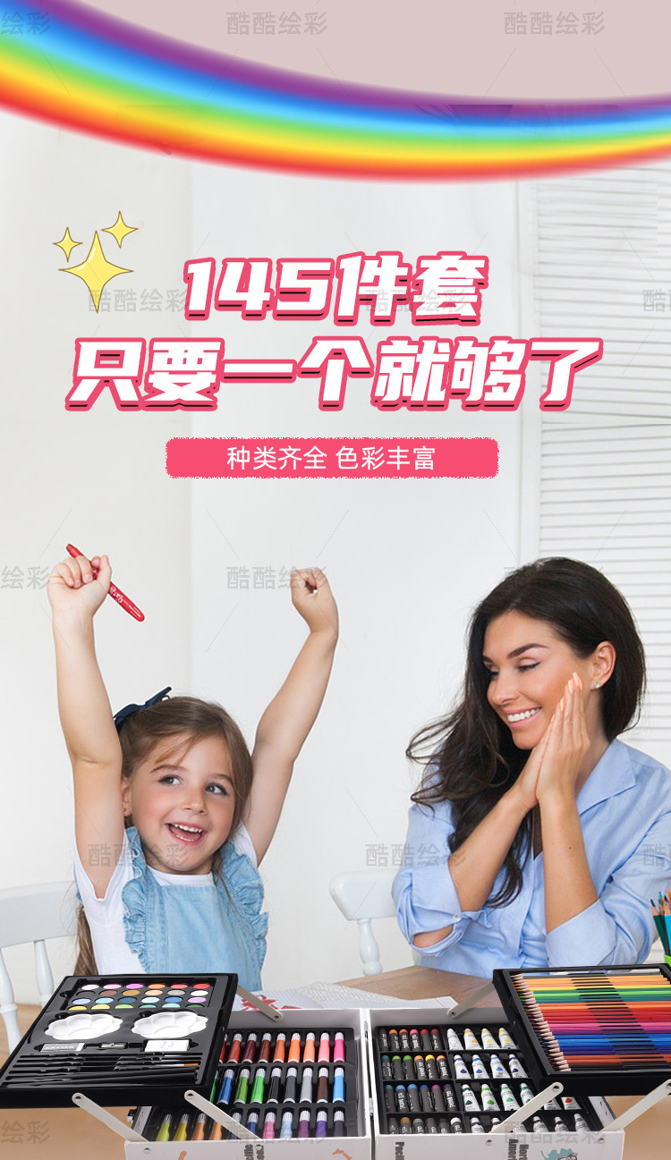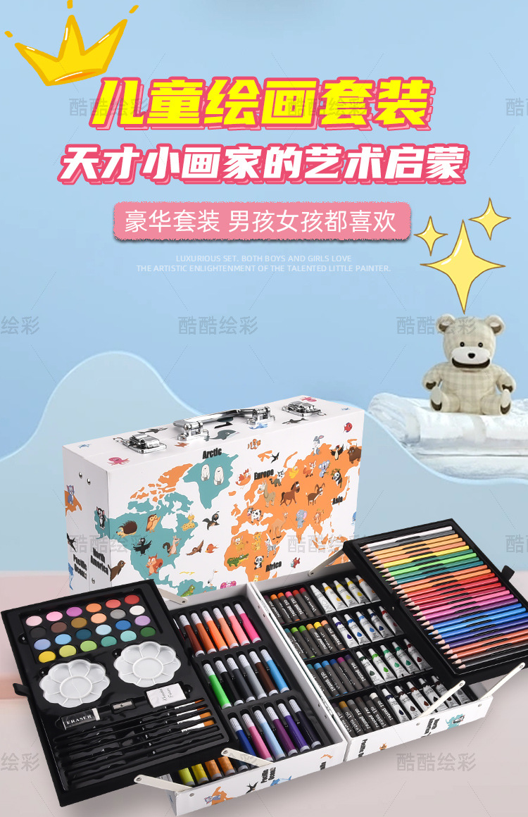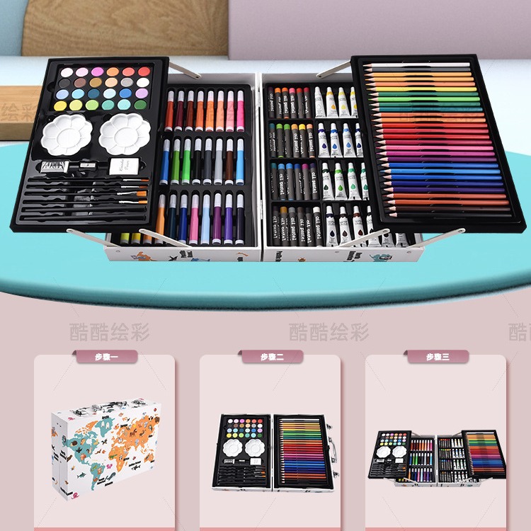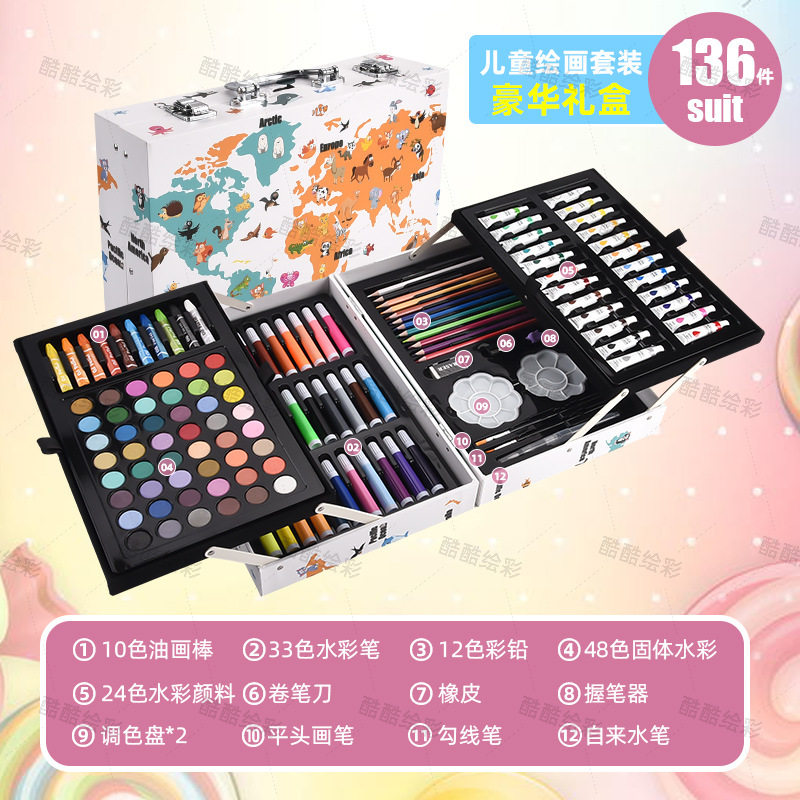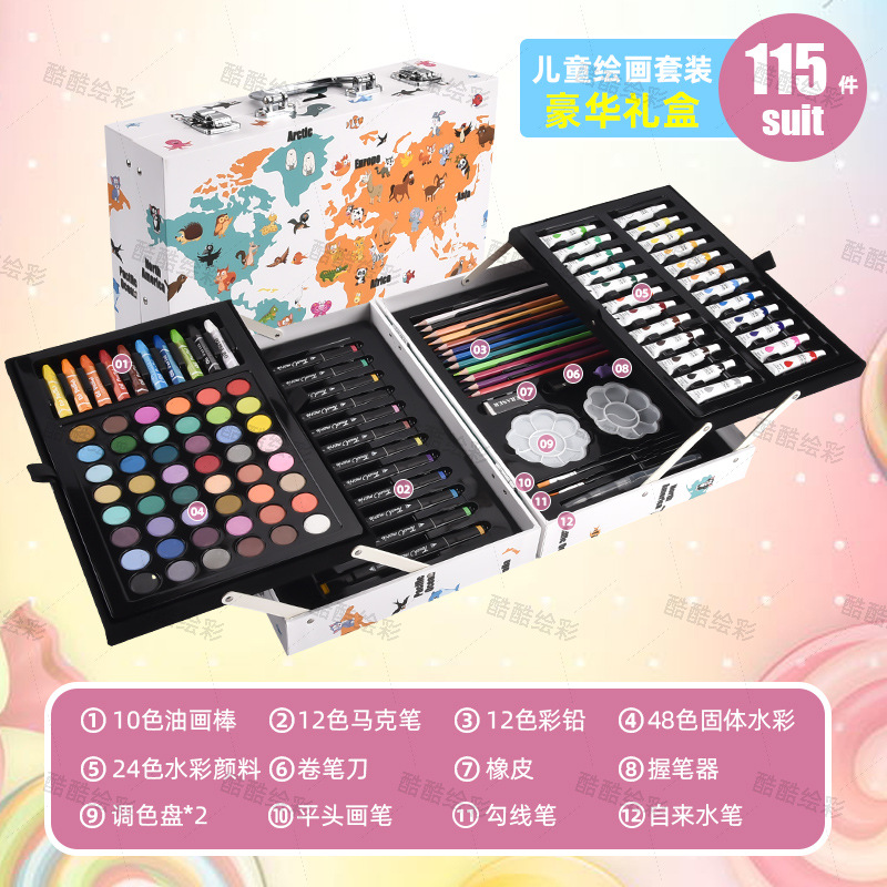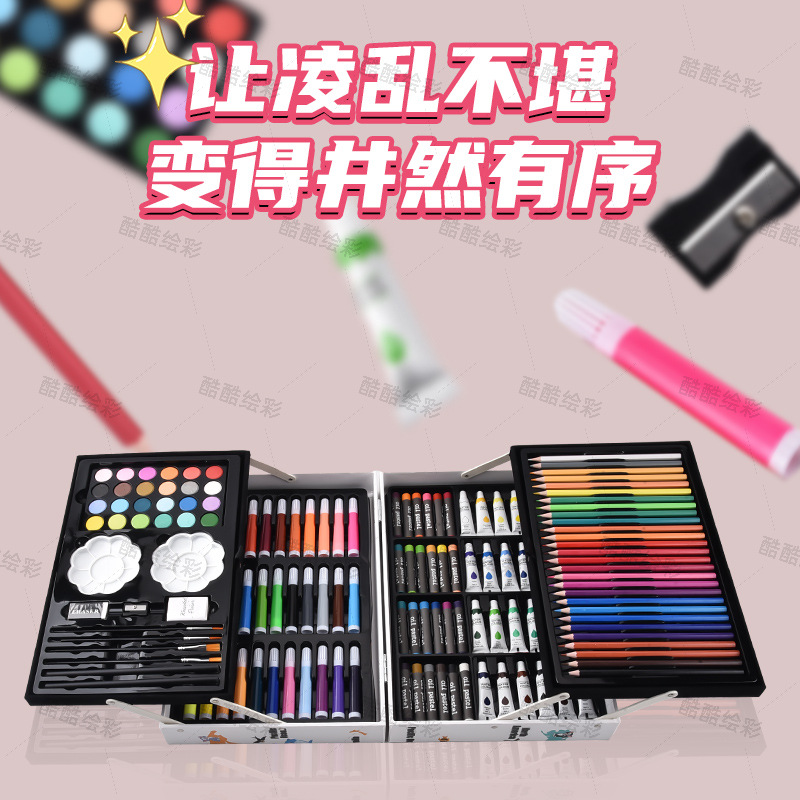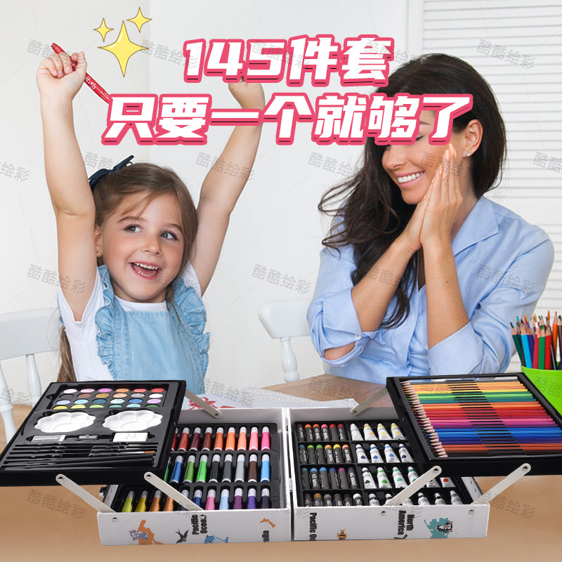 开学季儿童文具彩笔礼盒145绘画套装画笔套装水彩笔蜡笔颜料画画 English | 投诉