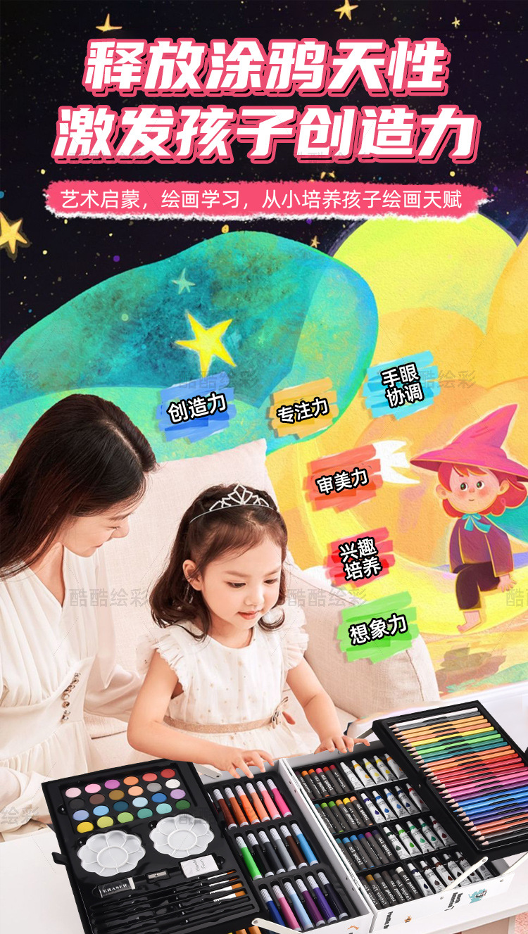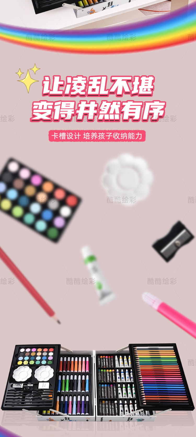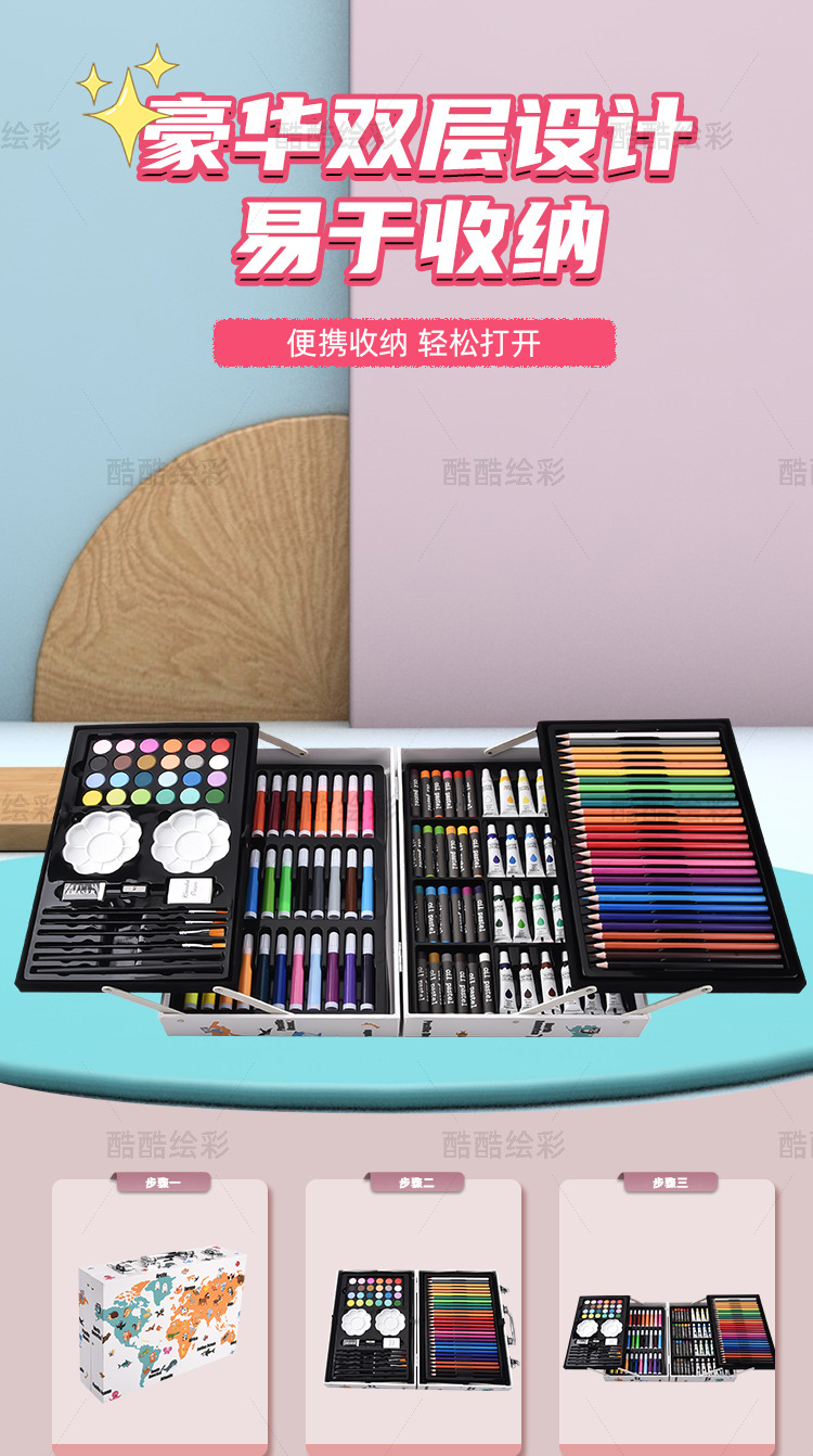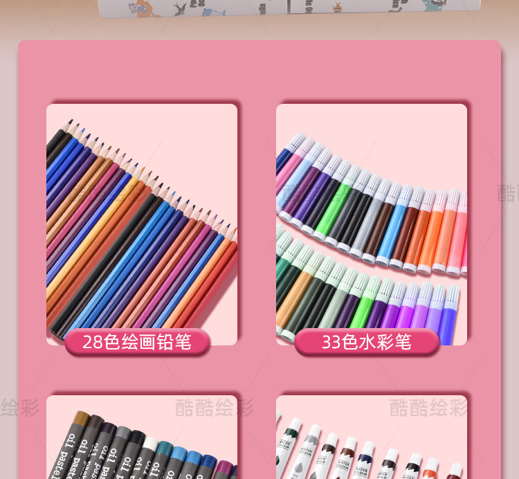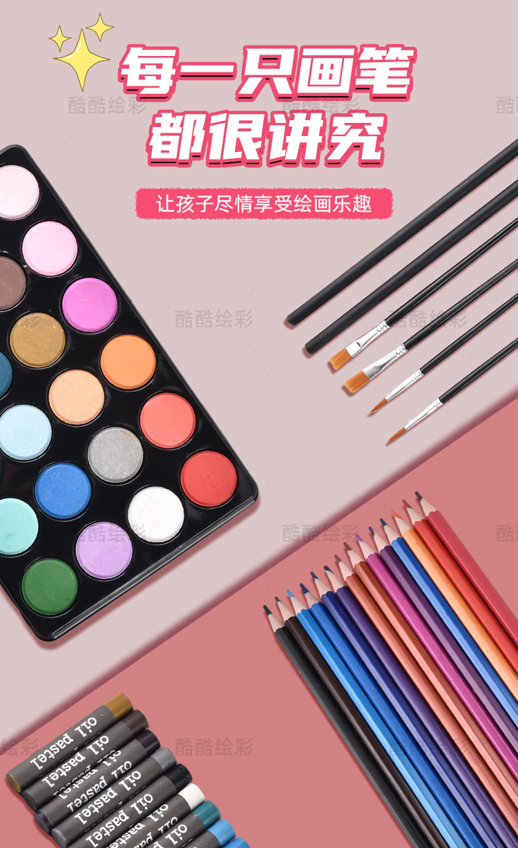 开学季儿童文具彩笔礼盒145绘画套装画笔套装水彩笔蜡笔颜料画画 English | 投诉