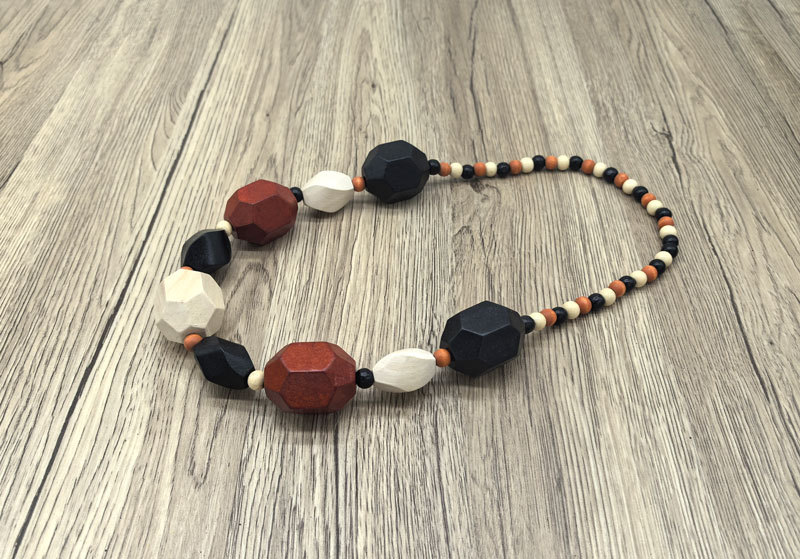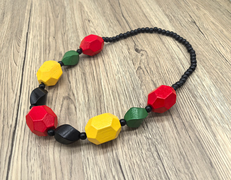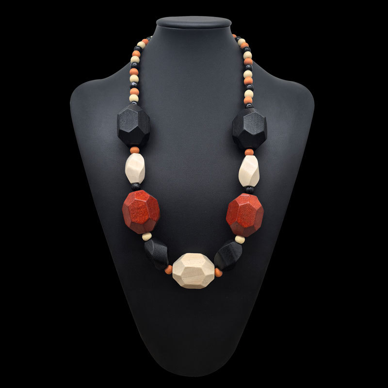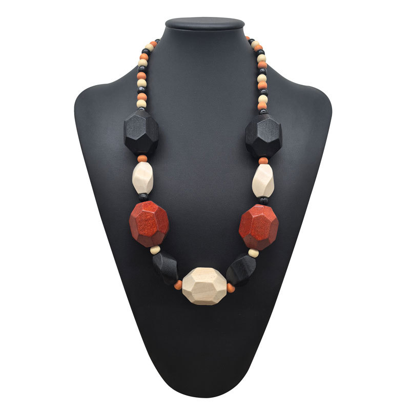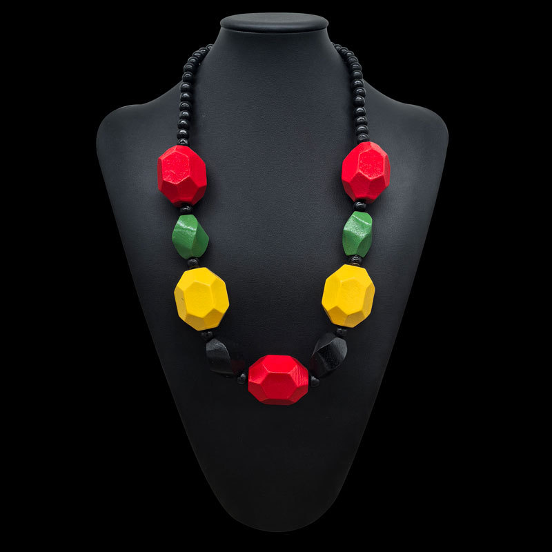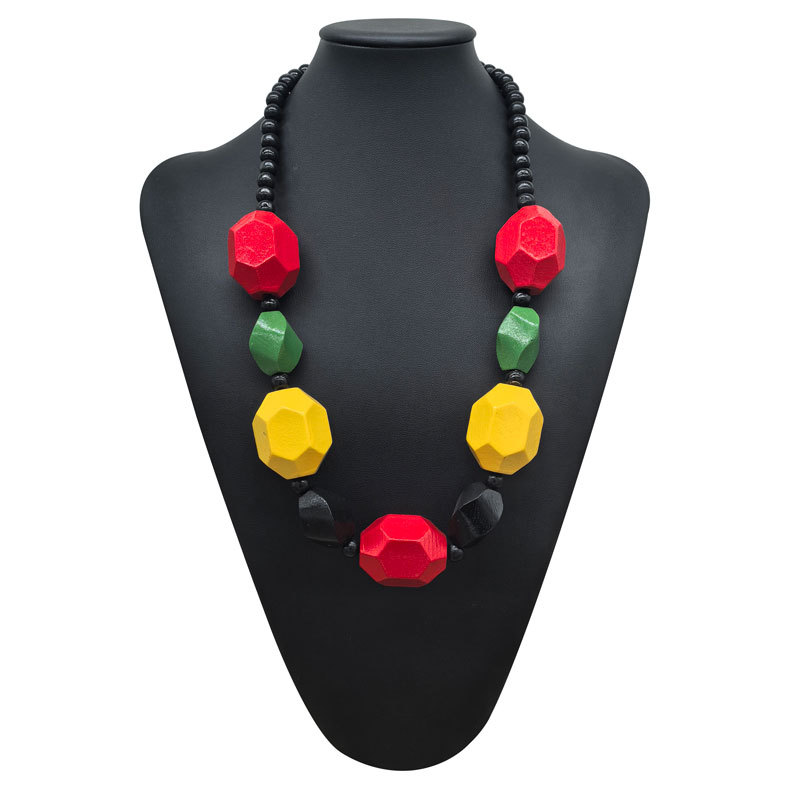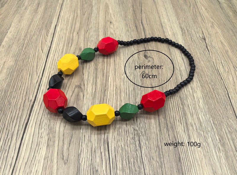 欧美复古彩色几何大木项链吊坠民族习俗黑珠链波西米亚手工串珠女
