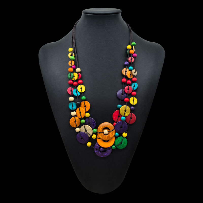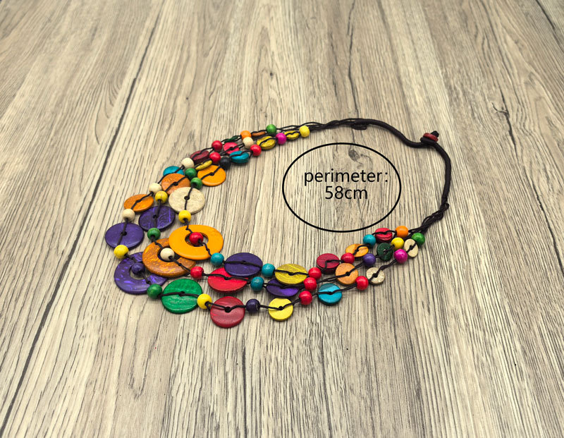 波西米亚民族风多层彩色圆形椰壳木珠复古时尚手工编织项链批发 投诉