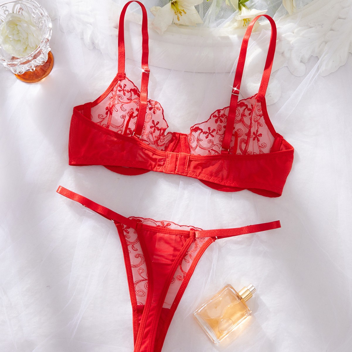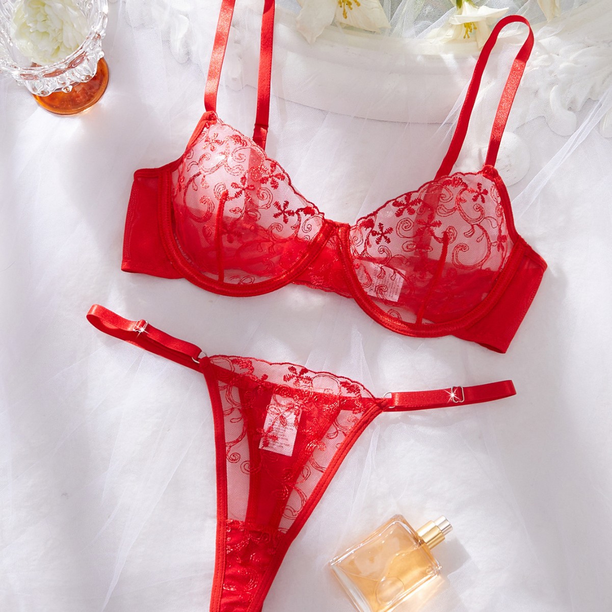 款式: 三点式,透视装,网纱装 面料名称: 网纱 主面料成分: 聚酯纤维(涤纶) 角色扮演: 其它 包装形式: 袋装 适用性别: 女 上市时间: 2025夏季 产地: 佛山 是否跨境出口专供货源: 是 是否进口: 否 货号: XX-3376 颜色: 红色 尺码: S,M,L,XL 主面料成分含量: 90%(含)-95%(不含) 重量: 0.065 kg/套