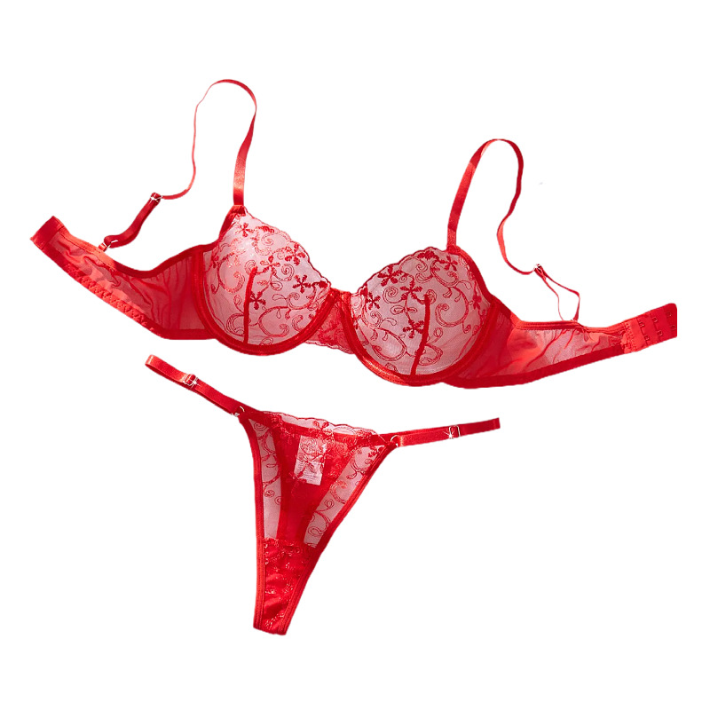 跨境外贸俄罗斯情趣内衣花卉刺绣钢圈聚拢可调节丁字裤文胸套装