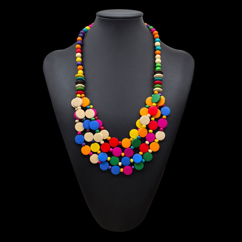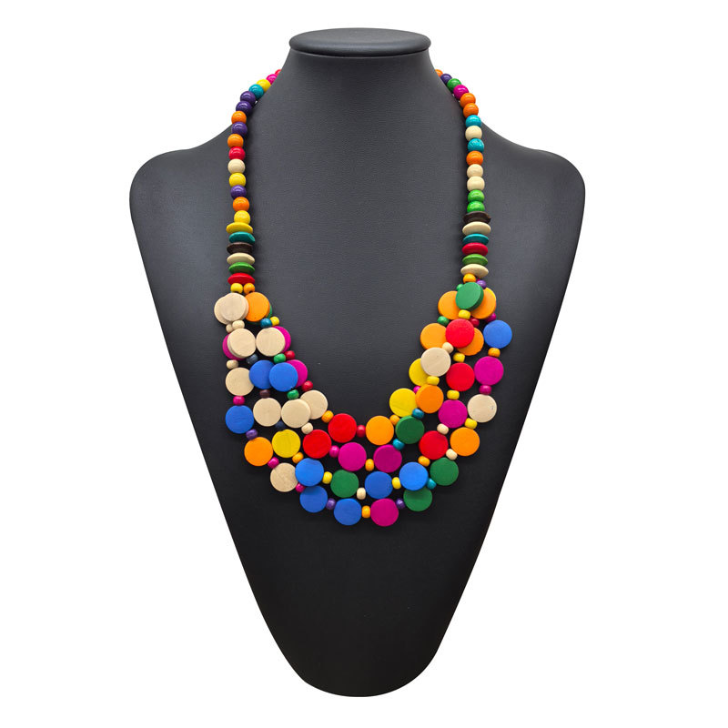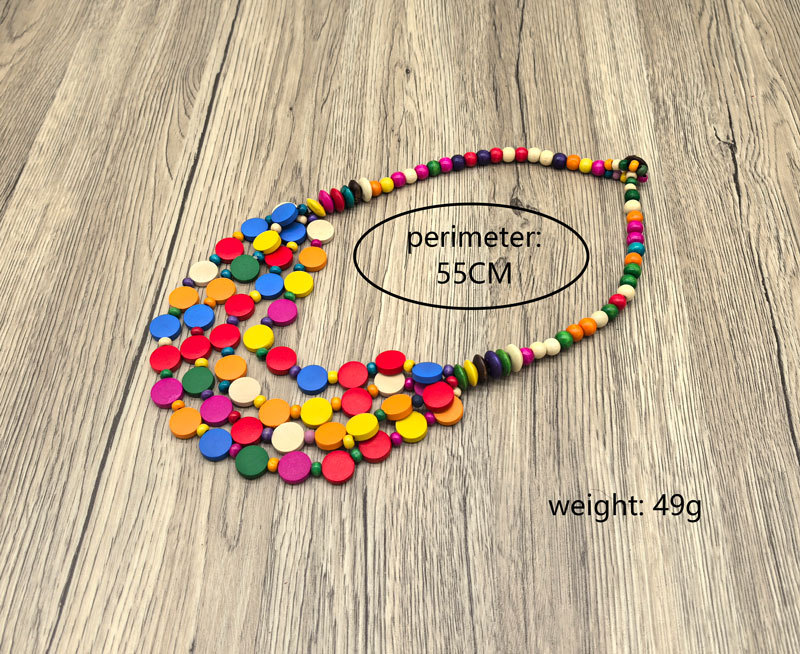 民族风彩片木圆片多层串珠项链手工编织复古毛衣链女 necklace