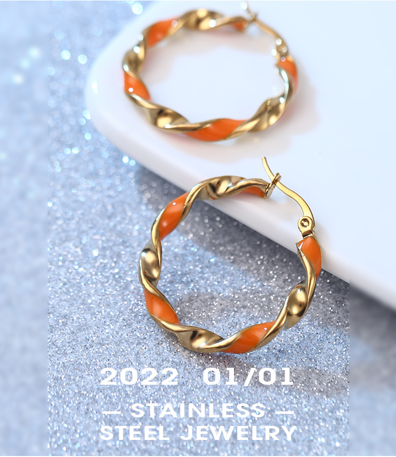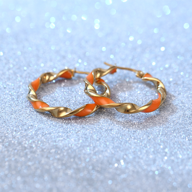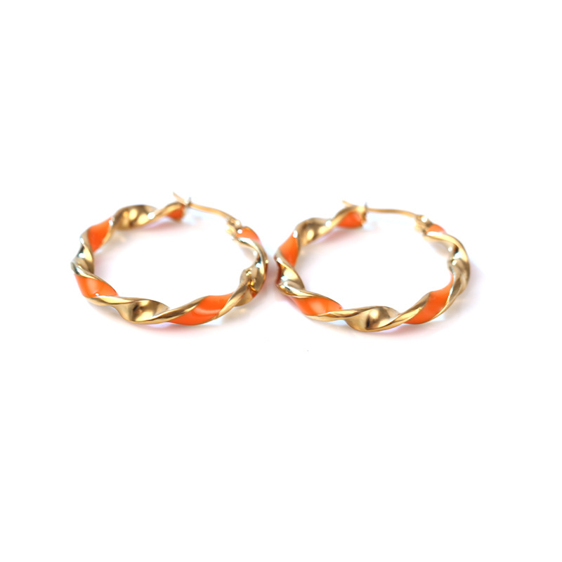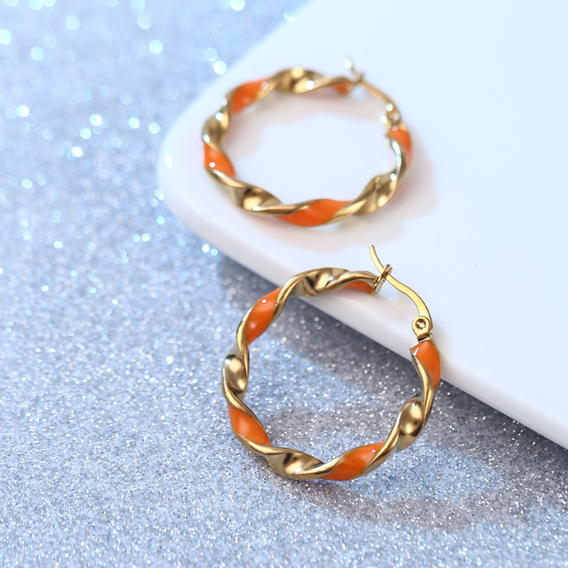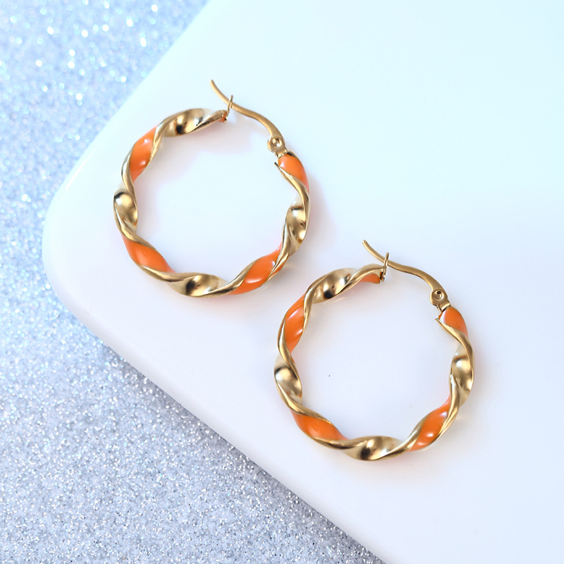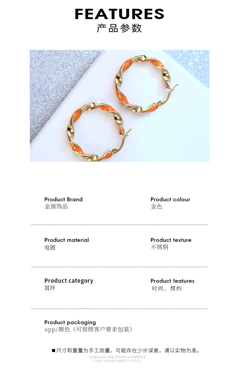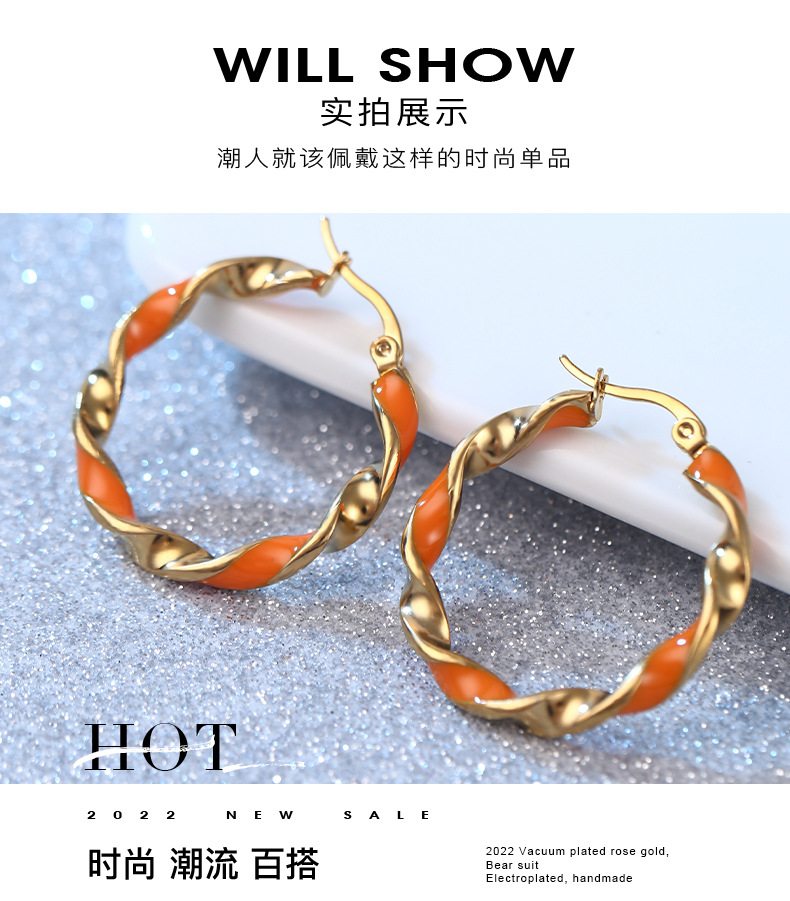 摩登时尚撞色圆形耳环女 韩版韩式橙色滴胶气质百搭不锈钢耳圈 English | 投诉