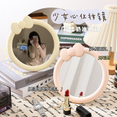 INS学生风化妆镜宿舍可旋转首饰收纳蝴蝶结公主镜台式高清塑料镜