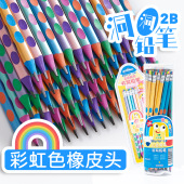 2b洞洞笔铅笔批发树脂珠光色带彩虹橡皮头2B洞洞铅笔矫正握姿