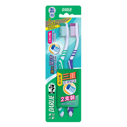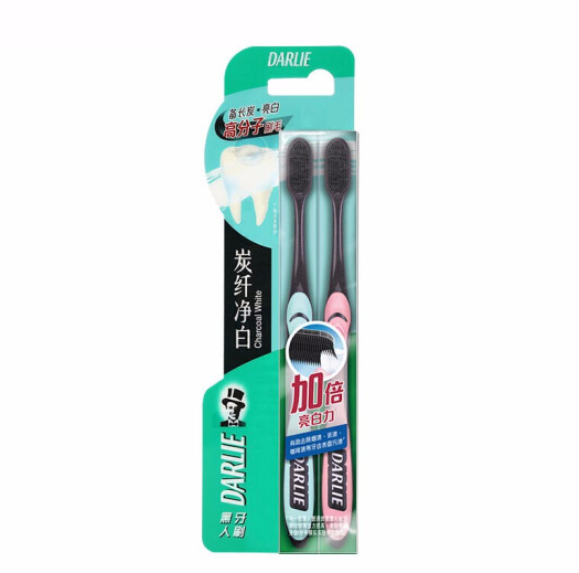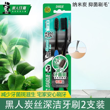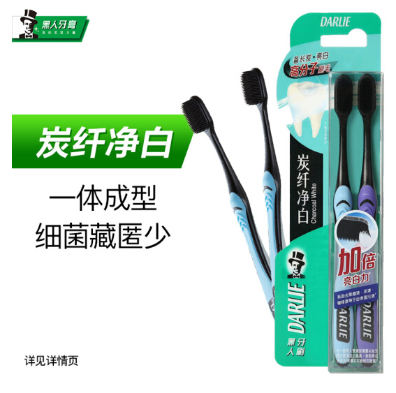 黑人炭纤净白牙刷2支装 软胶毛 减少牙菌斑 去渍净白 一体成型