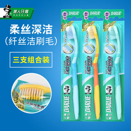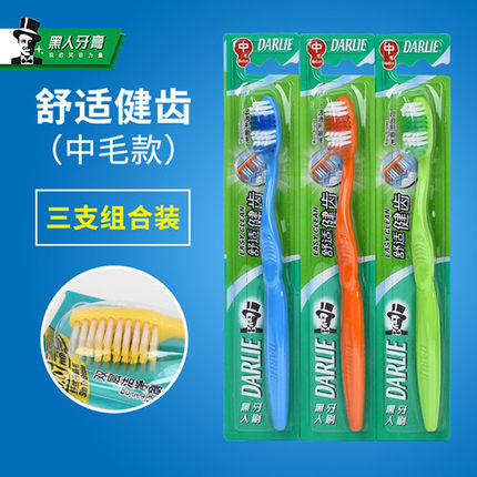 黑人舒适健齿牙刷齿中毛深层清洁呵护牙龈健康装黑3支装8.5折