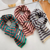 针织围巾女秋冬季韩版百搭撞色条纹学生情侣加厚保暖毛线围脖护颈