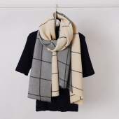 格子拼色涤棉围巾 女士仿羊绒披肩冬季韩版保暖加厚双面围脖批发