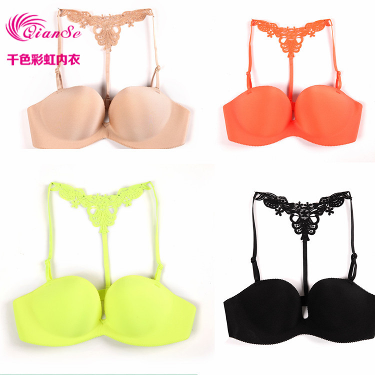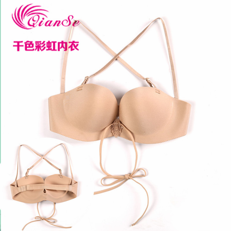 一片式 无痕女士内衣小胸前扣聚拢型光面胸罩 交叉美背调整文胸