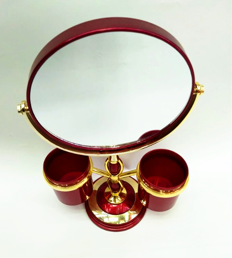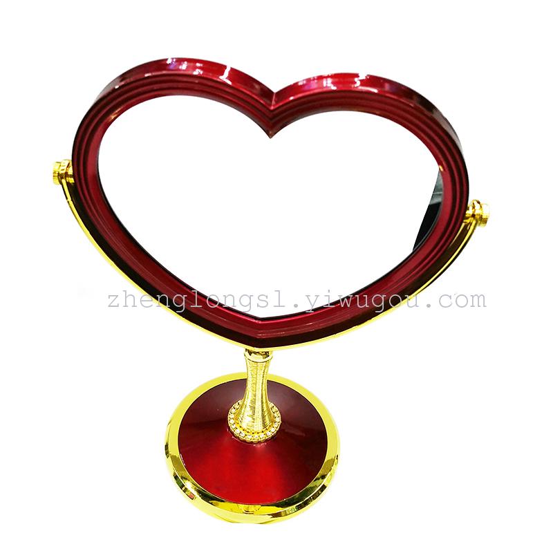 喷漆红色电镀金边 心形双面高脚台式双面台式高脚化妆镜