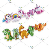 新款连体拉拉球 生日独角兽恐龙生日派对拉旗铝膜气球 宇航员主题