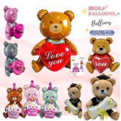 跨境新款情人节爱心小熊I LOVE YOU生日抱蛋糕造型组装气球套装