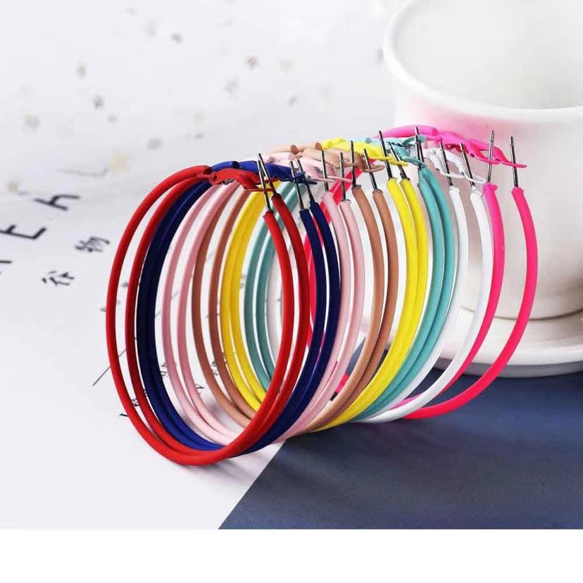 时尚流行休闲百搭环保橡皮漆耳环 不掉色多彩荧光 尺寸可定做
