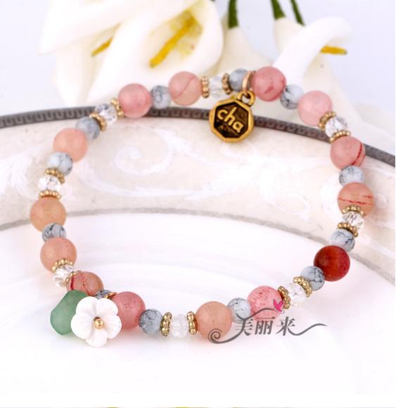 精美小花手串 高档天然水晶串珠手链 时尚女士手工饰品