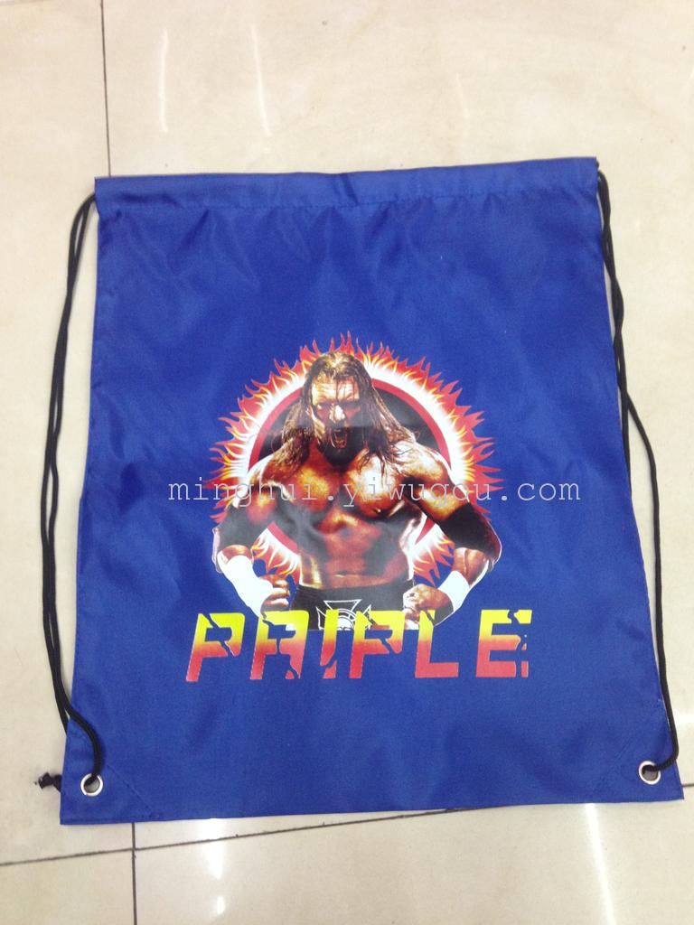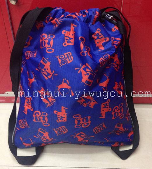 新款织带抽绳包 涂PVC印花拉链抽绳背包