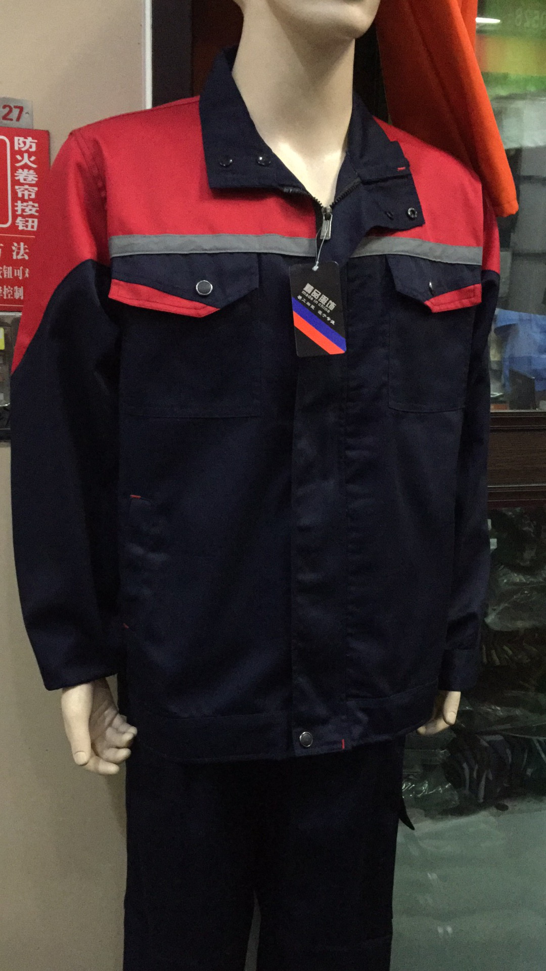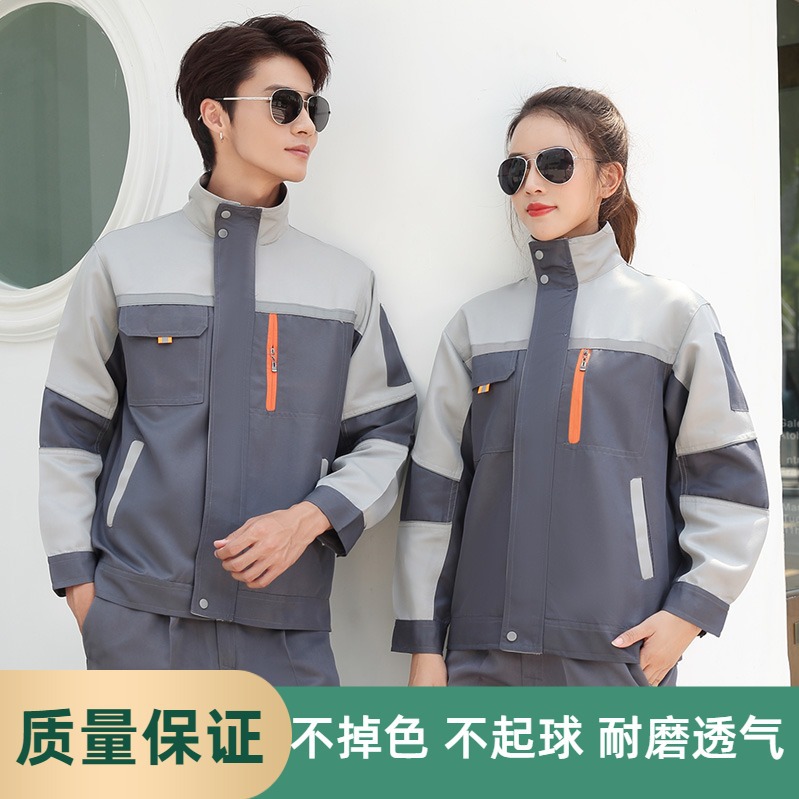 新款工作服套装男士女春秋耐磨加厚车间工地汽修反光劳保服装上衣