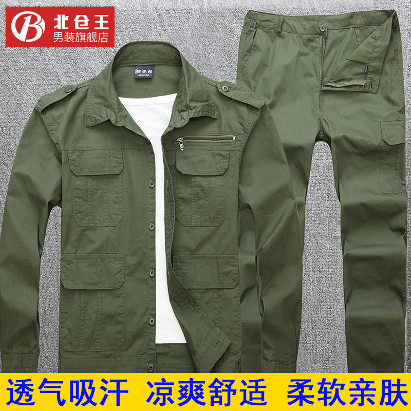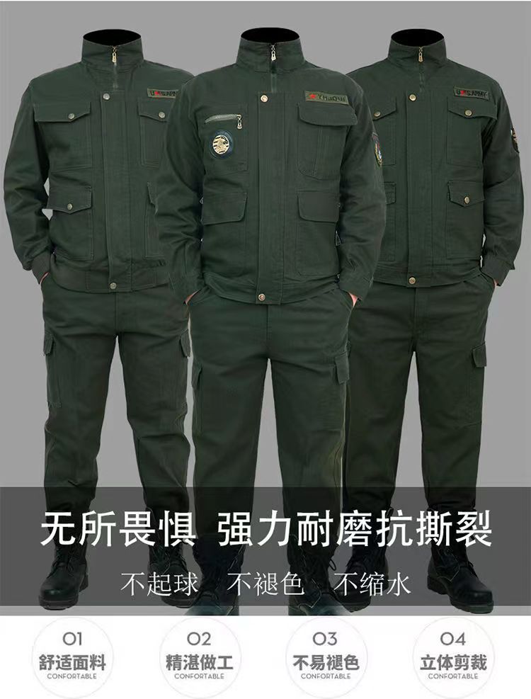 纯棉军绿长袖工作服套装男车间厂服电焊工汽修耐磨防烫劳保工作服