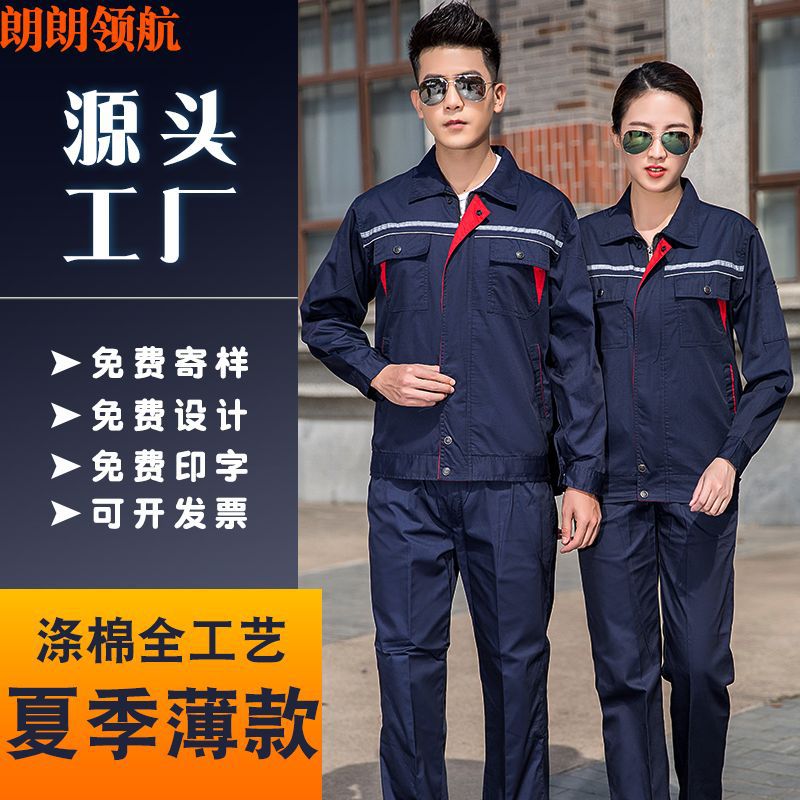 薄款长袖工程服套装透气吸汗反光条劳保服汽修定制夏季半袖工作服