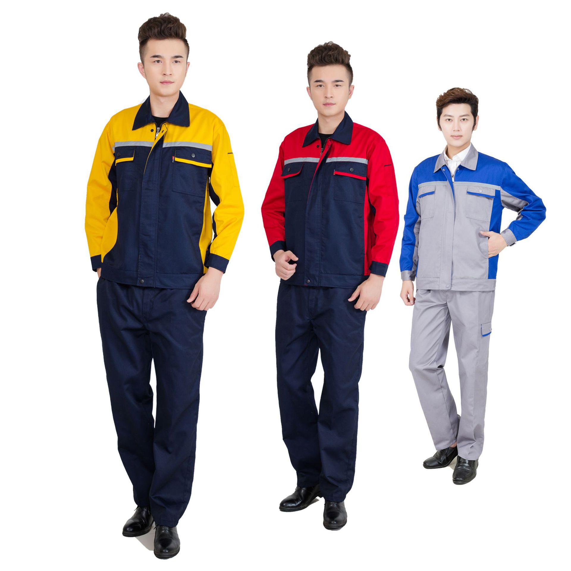 工作服男长袖套装工厂车间反光条劳保服外套上衣印logo刺绣工装