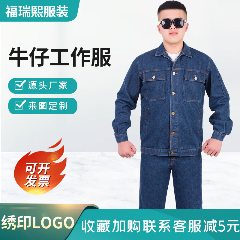 加厚牛仔工作服套装劳保服耐磨耐脏电焊工电工汽修焊工服男女车间