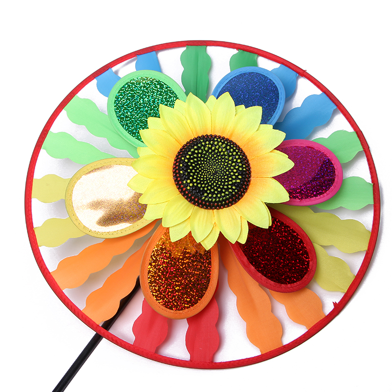 热销双层转盘太阳花亮片风车批发 幼儿园户外装饰大风车儿童玩具