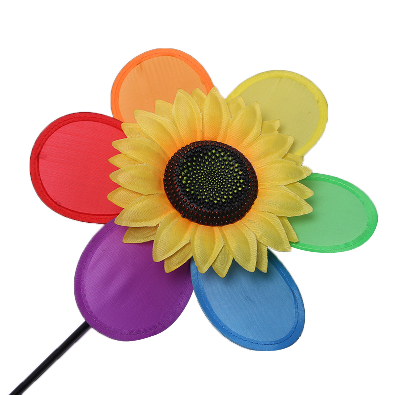 彩布片单层布艺六彩加太阳花风车地摊景区装饰向日葵儿童玩具风车