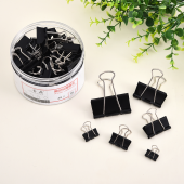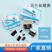 黑色盒装长尾夹文件夹子燕尾夹铁票夹大小号办公文具用品办公组合