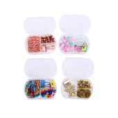 外贸出口回形针长尾夹组合创意图钉三格PP盒装办公用品彩色长尾夹