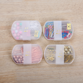 外贸出口回形针长尾夹组合创意图钉三格PP盒装金属彩色长尾夹票夹
