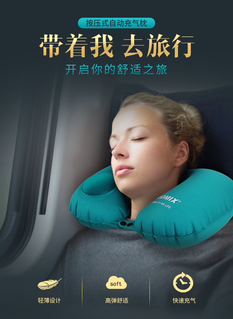 按压充气U型枕头便携旅游成人飞机颈枕护脖子坐车旅行护颈枕新款