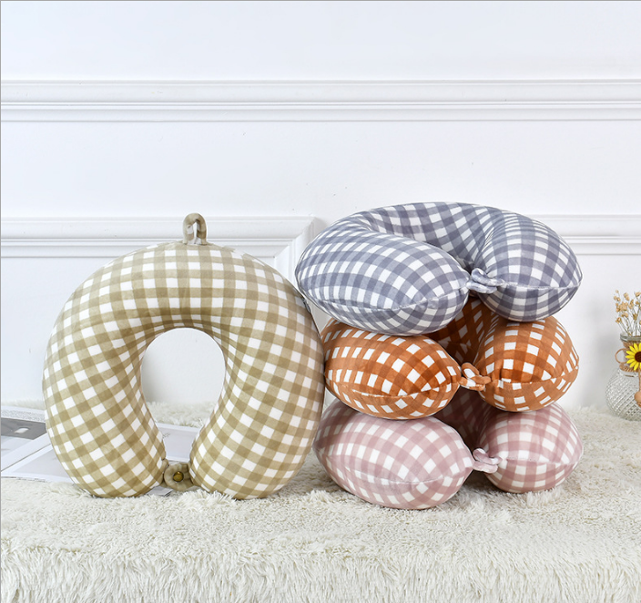 新品夏季格子收纳颈椎枕 记忆棉U型枕办公室午睡冰丝清凉旅行枕头