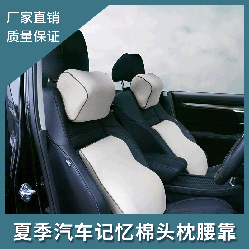跨境外贸汽车头枕车载腰枕四季记忆棉腰靠透气座椅腰托皮革靠背垫