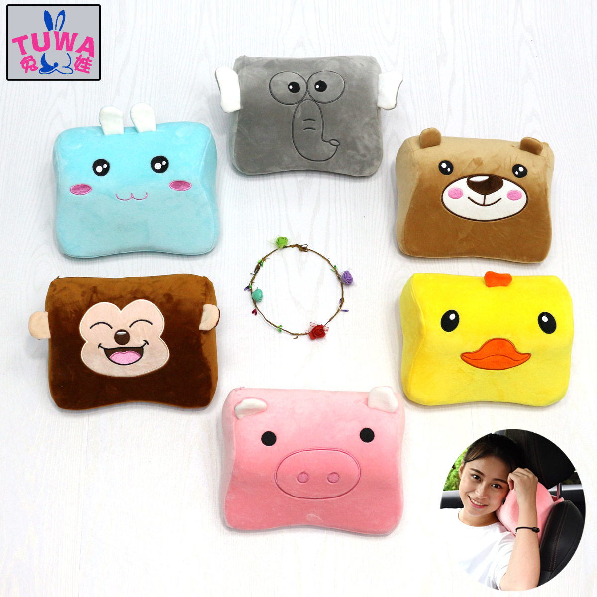 厂家直销汽车头枕卡通可爱车枕记忆棉汽车枕礼品赠品logo定制