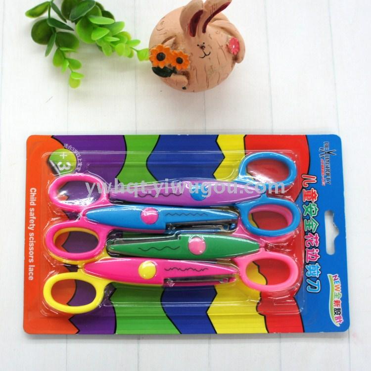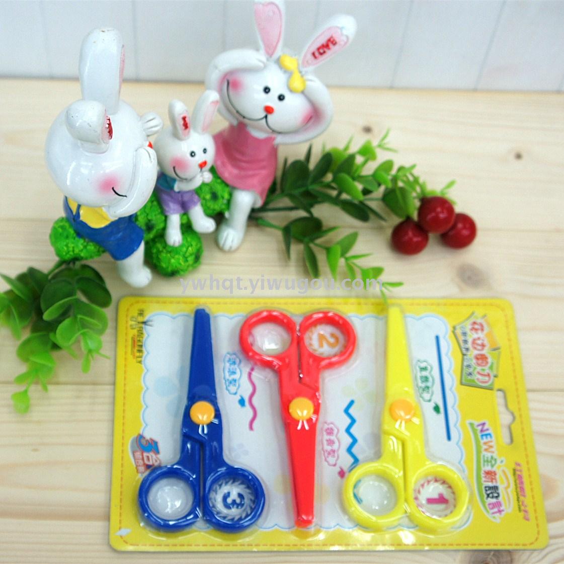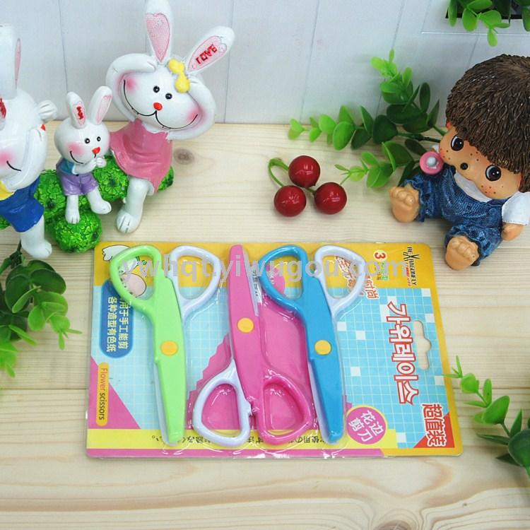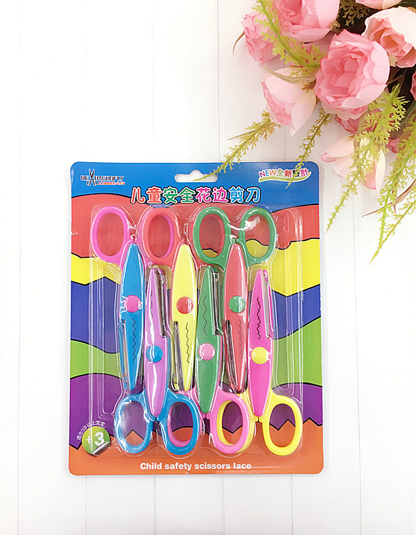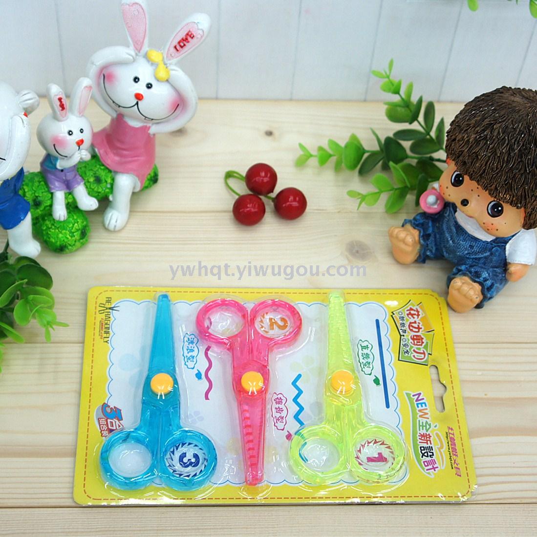 厂家直销 紫荆花剪刀 7130插卡花边换头剪刀 儿童剪刀