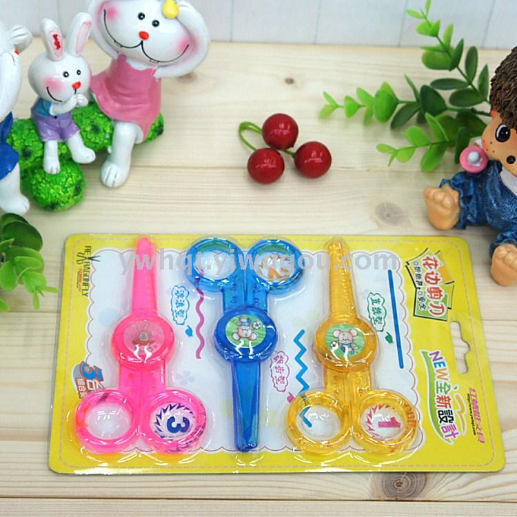 自产自销紫荆花双色全塑料学生安全剪套装7116插卡