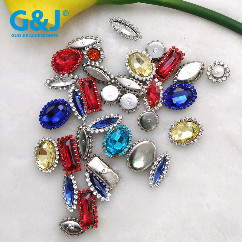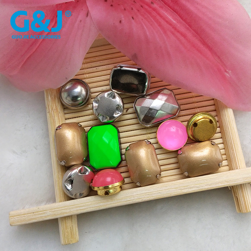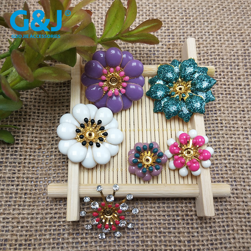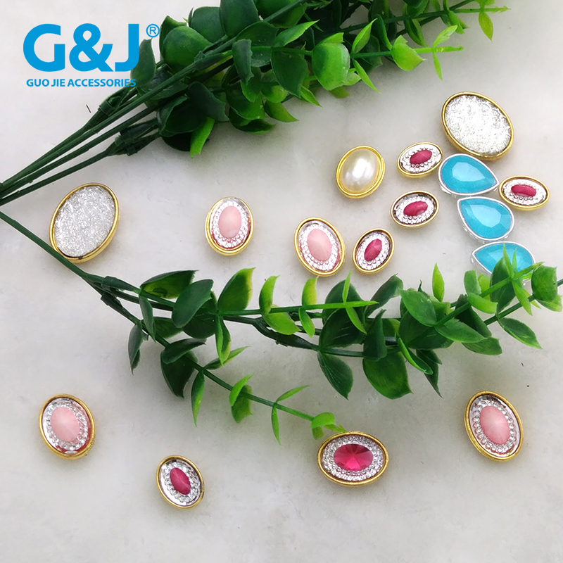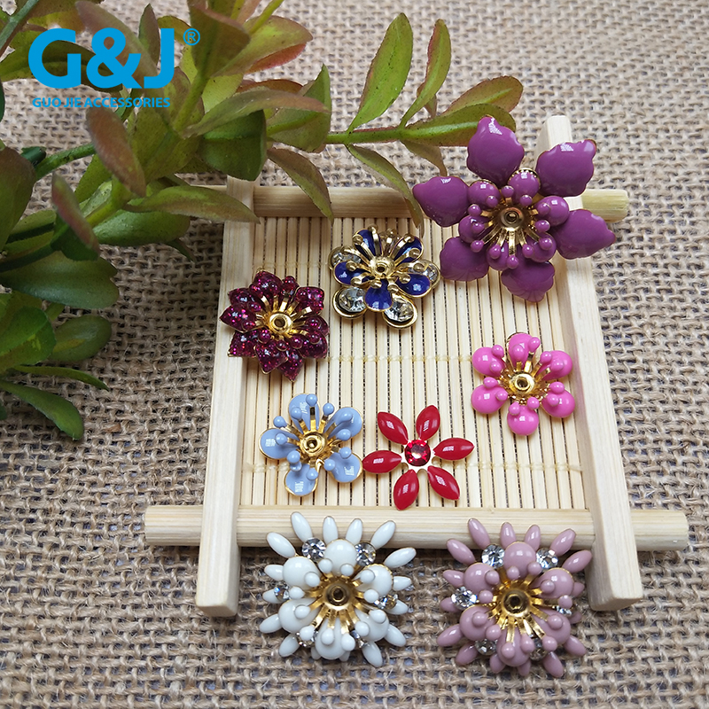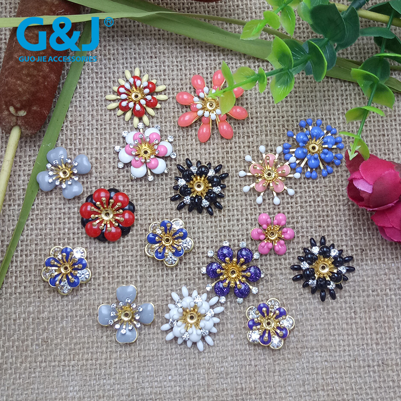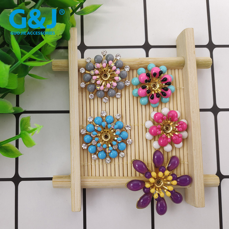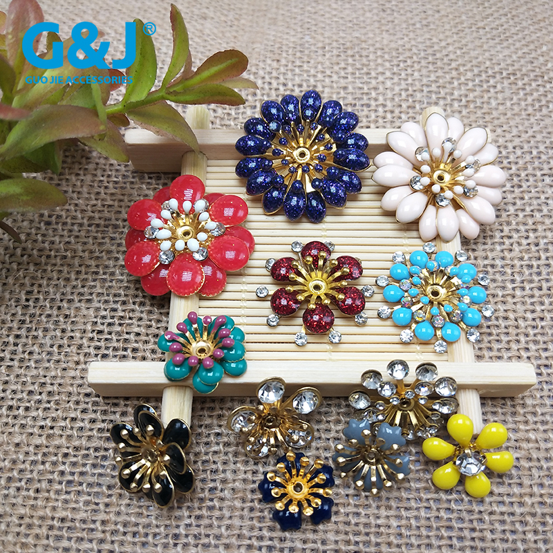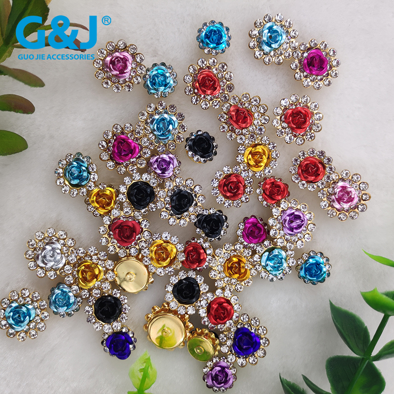 11.8MM彩色玻璃水钻点铝花玫瑰花手缝钮扣 手工占钻服饰辅料